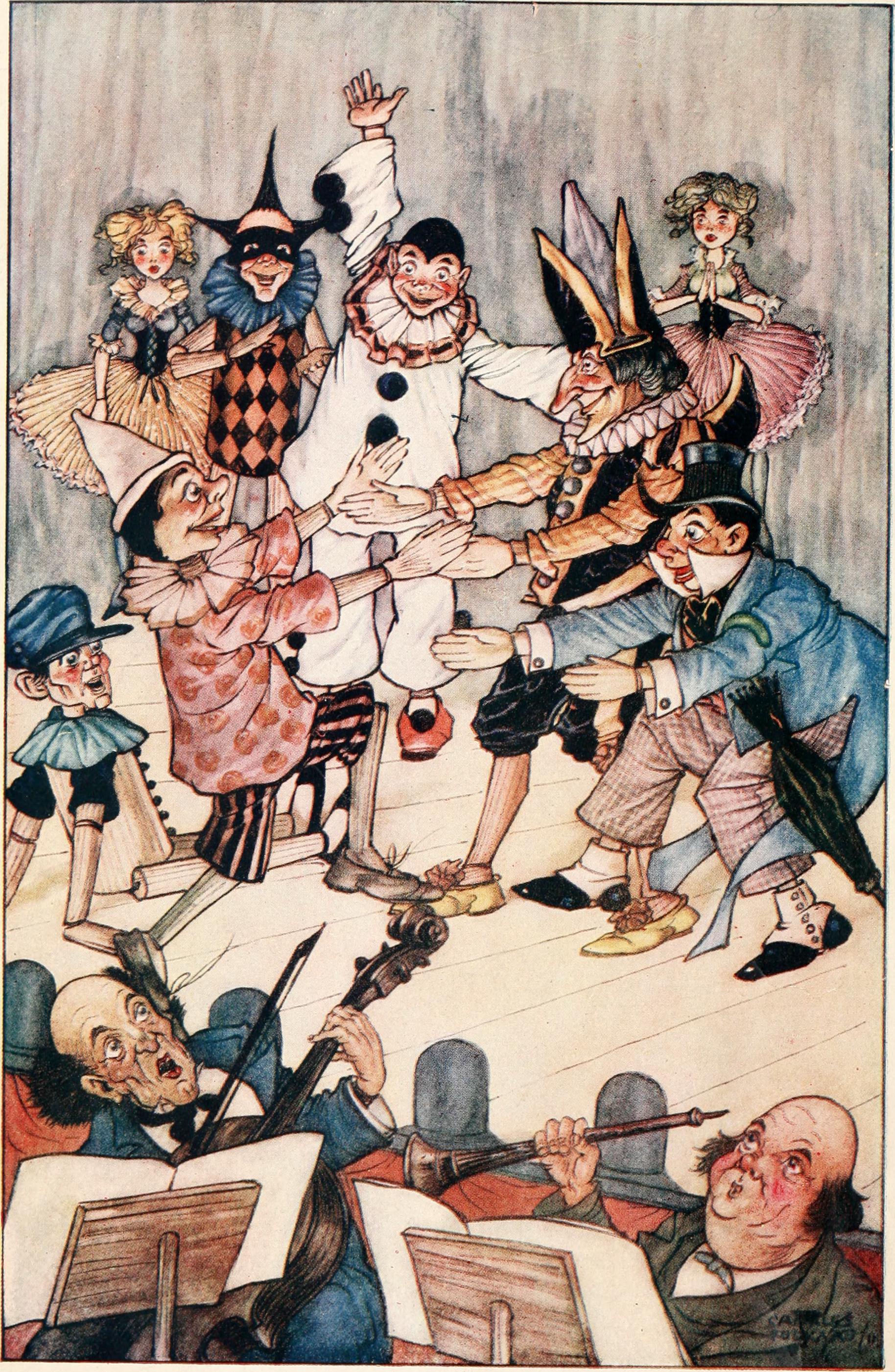 That was enough to prompt me search out Folkard’s other watercolor and gouache illustrations for Pinocchio.