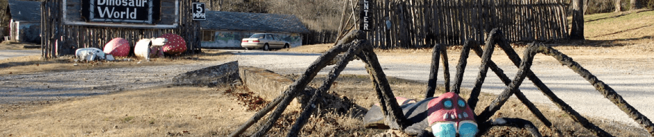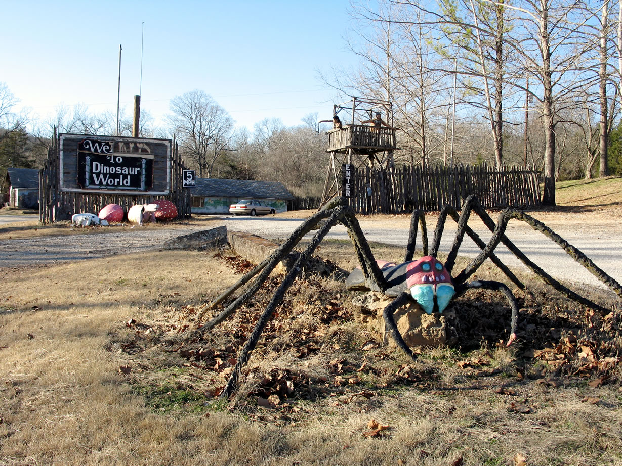 Dinosaur World a few years after closing; the spider is appropriate, as the Spider Creek Resort is just across the highway