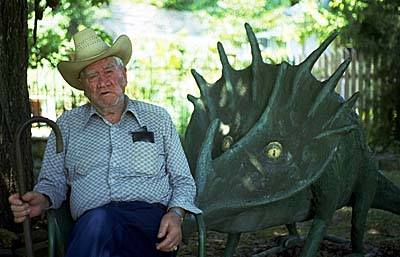 Ola Farwell and his dinosaur in Eureka Springs