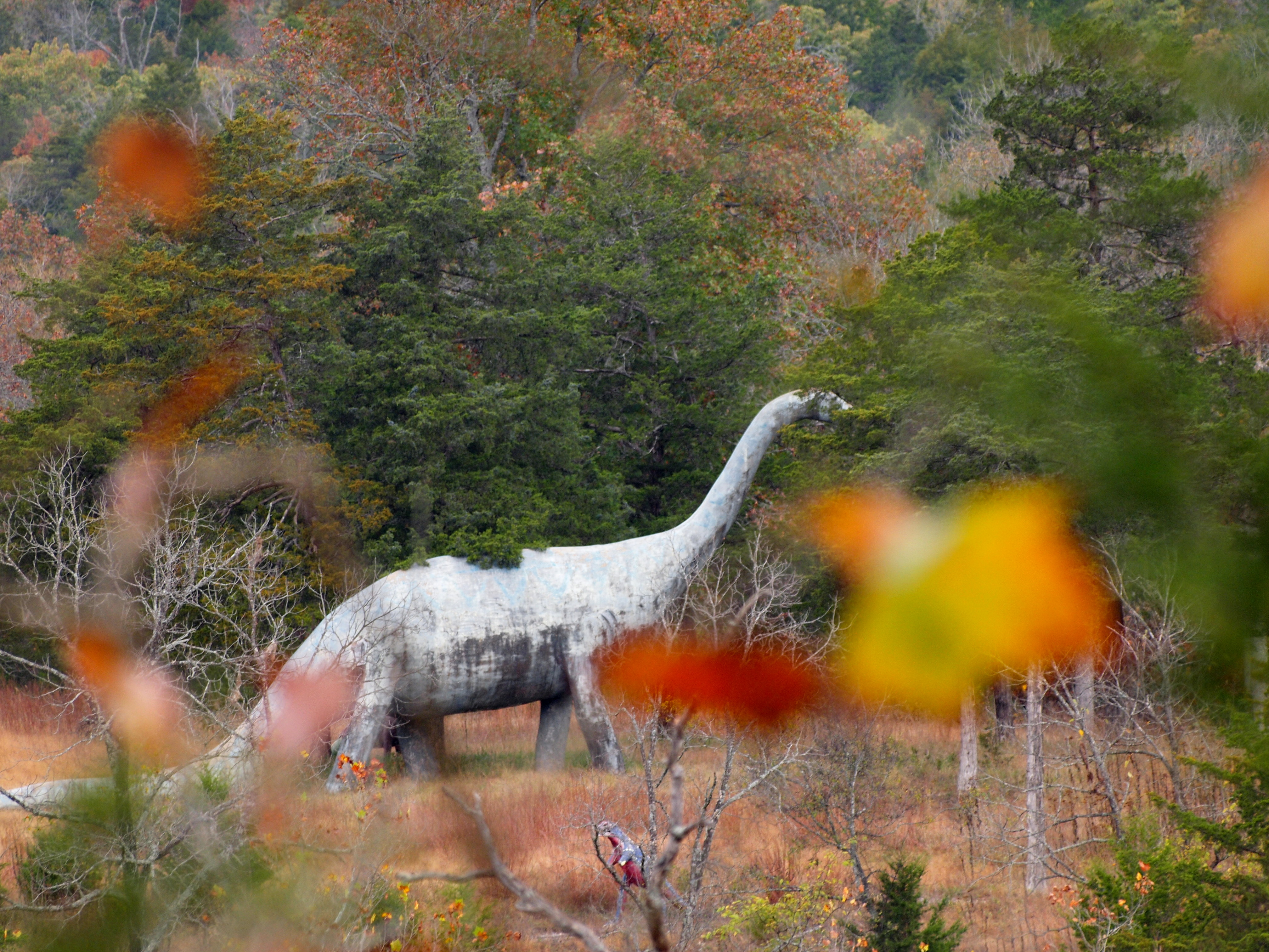 When Wendy and I have stayed at the Sugar Ridge Resort near Beaver Dam, we have driven by the old Dinosaur Park. I respect private property, so I never trespass, but I do enjoy catching glimpses of that Ozarks Land of the Lost through the trees.