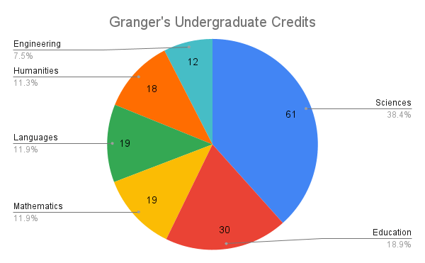 Here is the breakdown of my 159 undergraduate credits, which provided me with a solid background in both my subject and the art of teaching: