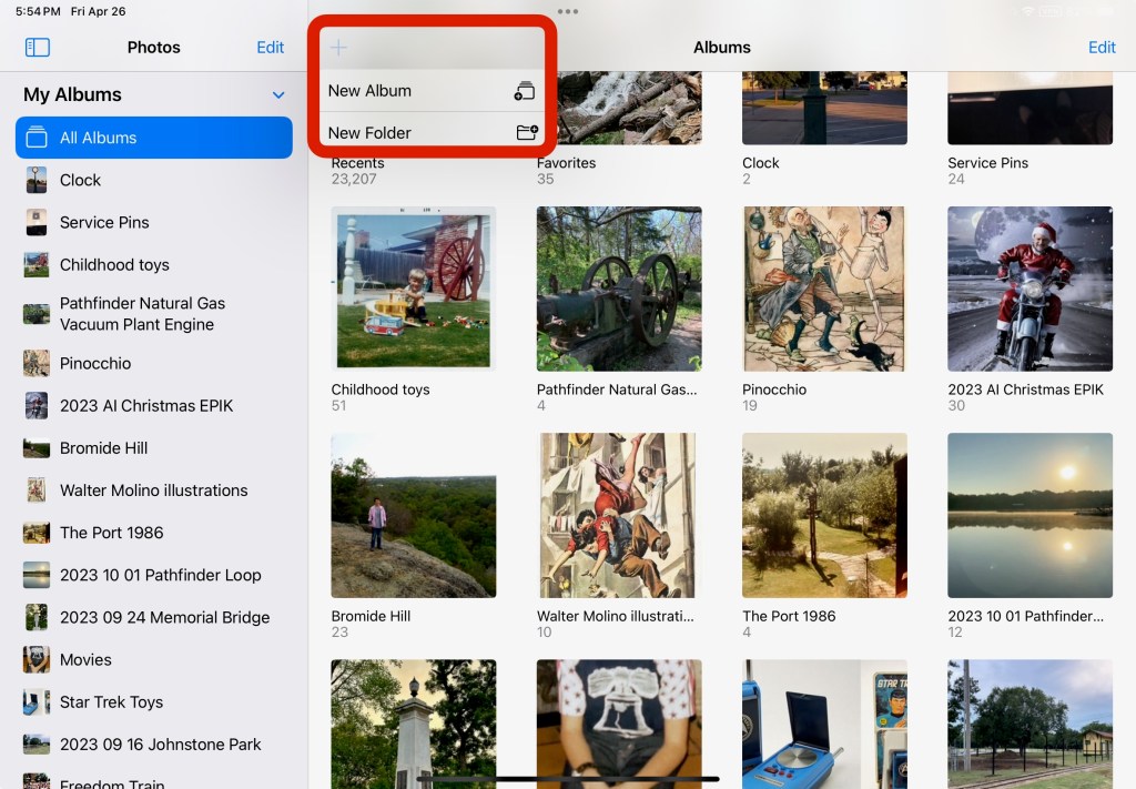 Those photos only partially overlap with the 130,000 photos on my home computer. I had only managed the iCloud+ photos in album form using my iPad. Also, Wendy and I like to create a Shared Album on each trip. So I had 175 of My Albums and another 95 Shared Albums.