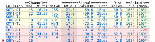 When television went digital, many of the stations began broadcasting on different channels than their branding from the analog days. Most use a “virtual” channel that makes them appear as a different channel on your television than the frequencies they are actually broadcasting on. Tulsa’s KJRH, for example, has always been known as Channel 2, although it now actually broadcasts on the frequency range for channel 8. Similarly, Tulsa’s KOTV Channel 6 is really broadcasting on channel 45, KTUL Channel 8 is really broadcasting on channel 10, and KOKI Channel 23 is really broadcasting on channel 22. The only station I can pick up that is actually using its advertised channel is KOED Channel 11 of the state’s education network.