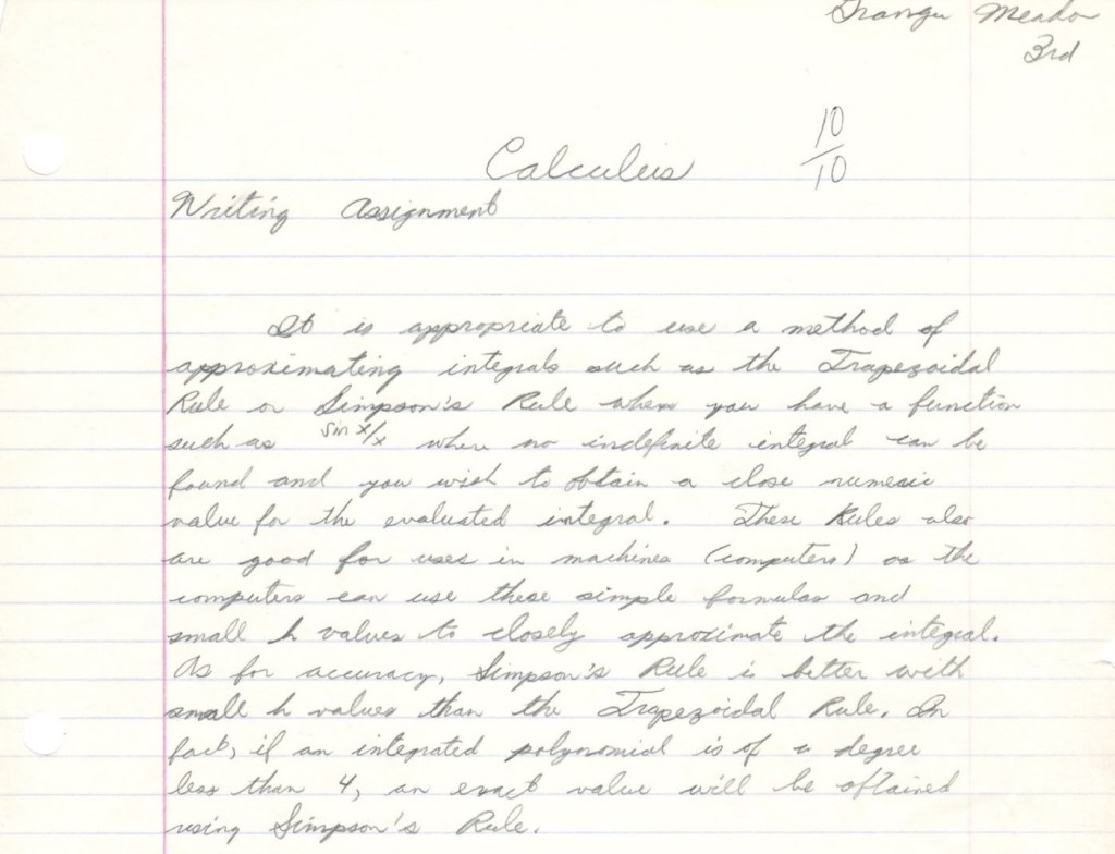 It is telling that the only high school Calculus paper I saved was one in which I was writing, not calculating.