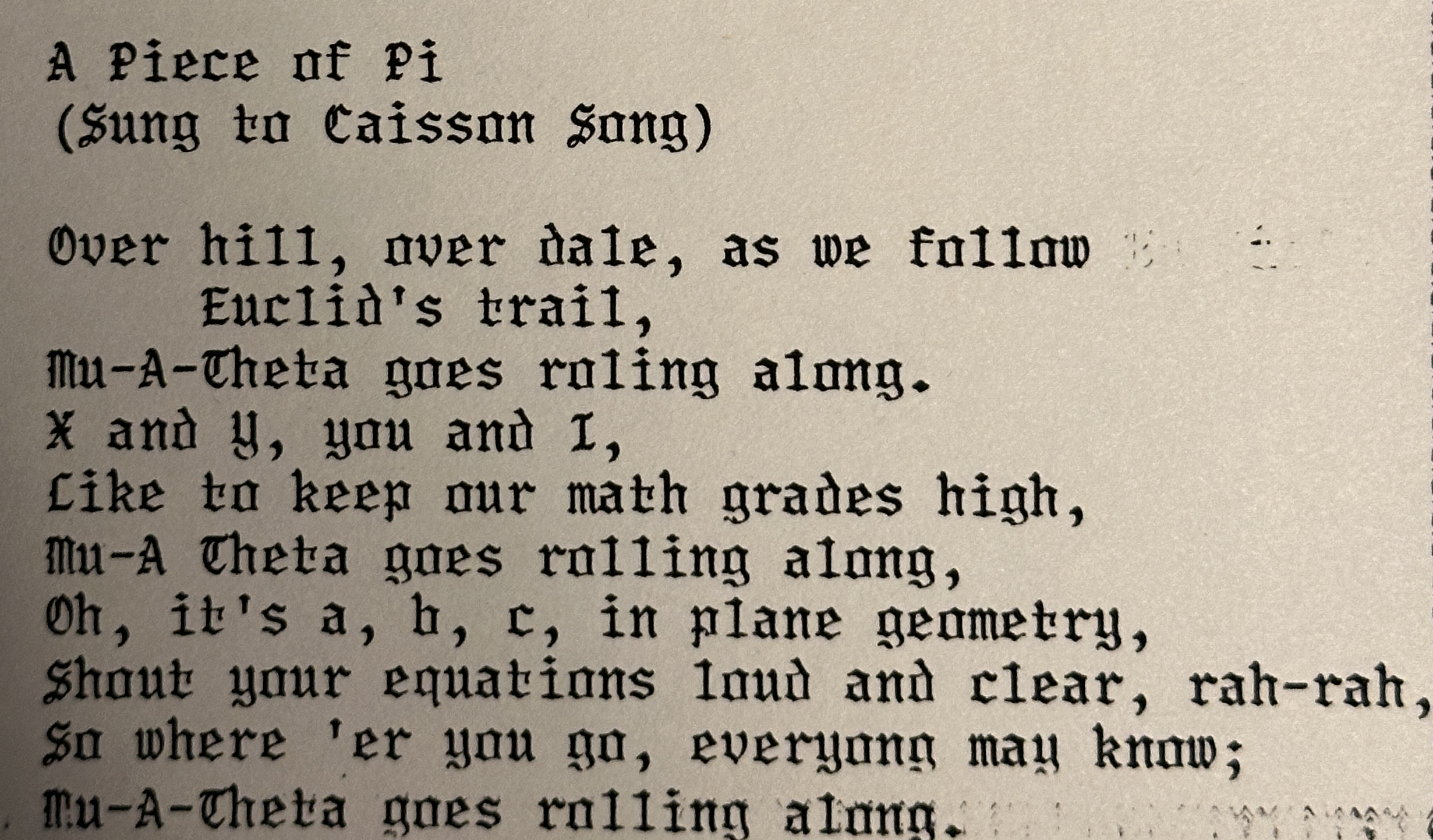 In addition to Mu Alpha Theta, I was on our high school’s Math Bowl team. Great…a math competition with top students from other schools, all with time pressure! I was actually surprised at how well I performed, having been cajoled into joining and figuring I might be a huge flop.