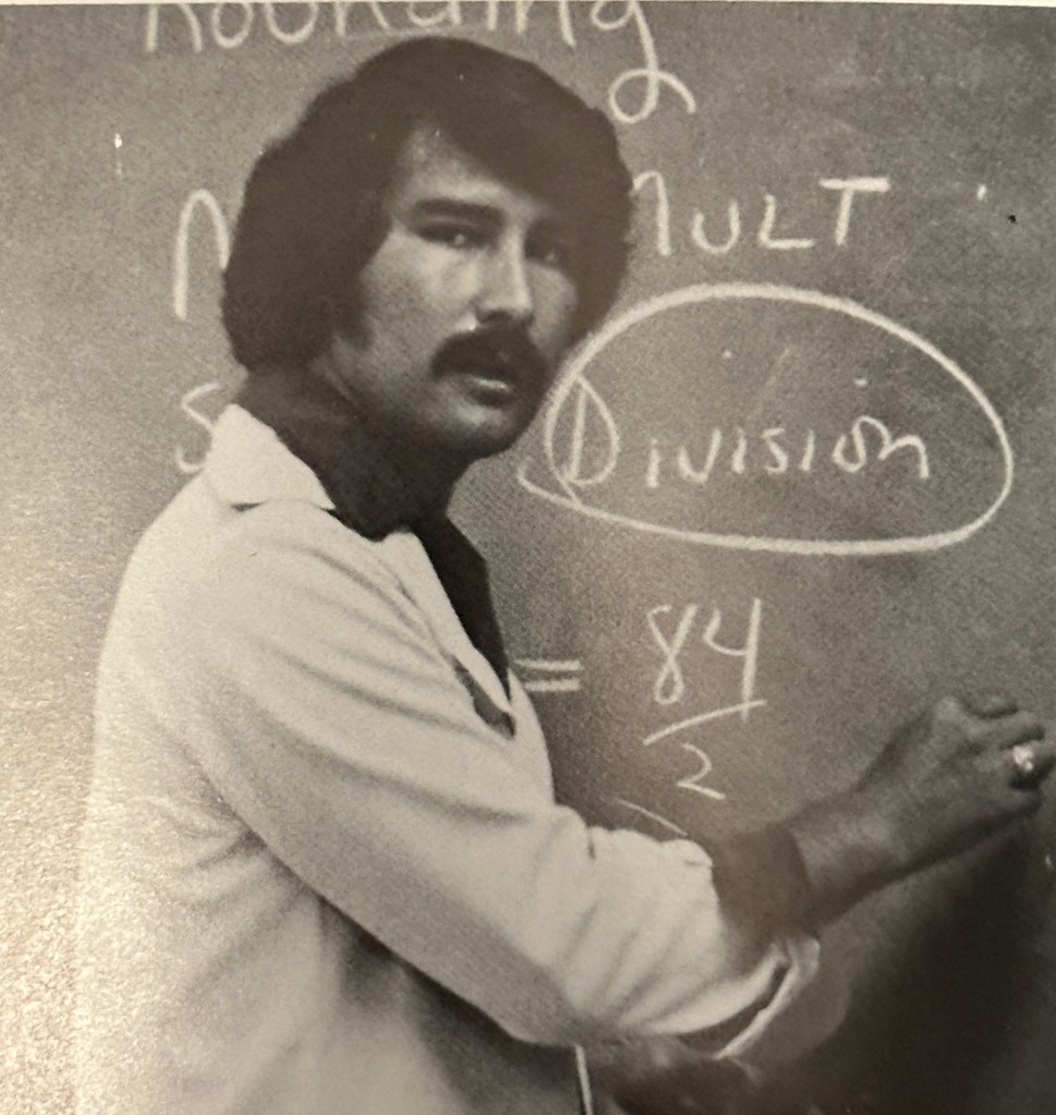 Jay Reagan was the baseball coach and Honors Math Analysis teacher. I enjoyed his class a lot, and throughout my life when people diss coaches with the stereotype that they can’t teach, I always point out that one of my best math teachers was a coach. Baseball, of course, is a sport drowning in statistics, and Coach Reagan could hold his own.