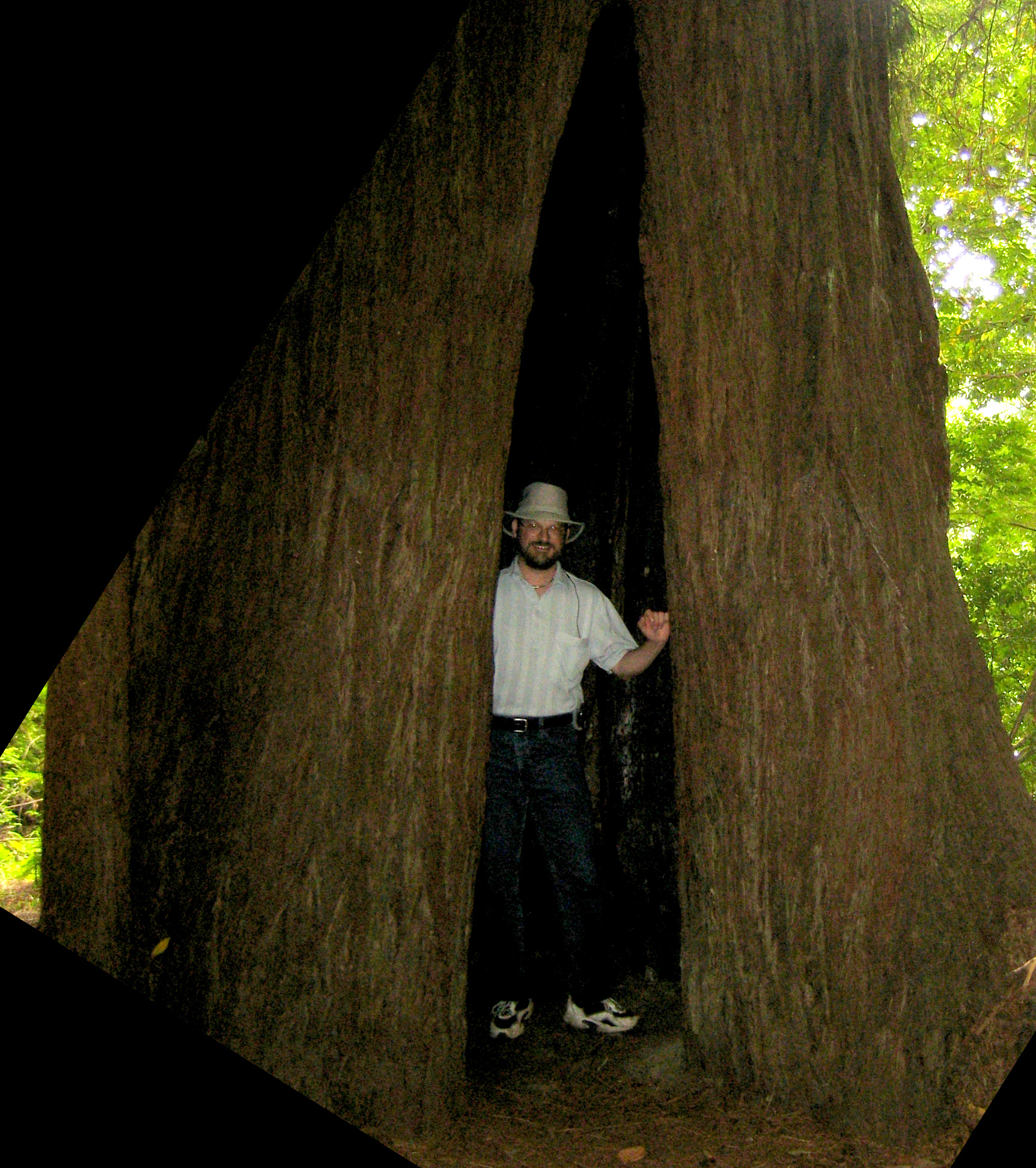 Wendy got a shot of me inside the same tree I had ducked into back in 2006. This time the camera wasn’t sitting on a nearby log, which had caused a severe list.