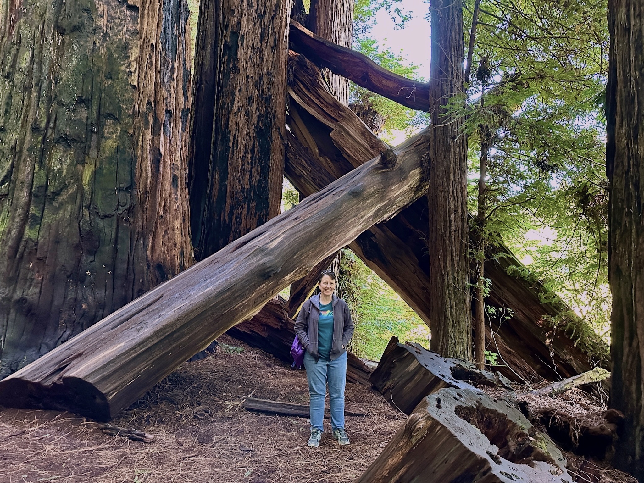 I remembered the diagonal fallen trees at one point along the loop, and this time was glad to have Wendy pose to provide scale that was lacking in my shot from 2006.