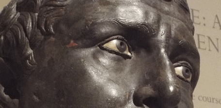 Most of the sculptures have lost their lifelike eyes in their struggle against time, buried in sand or sea or ash. Yet this gaze endured.