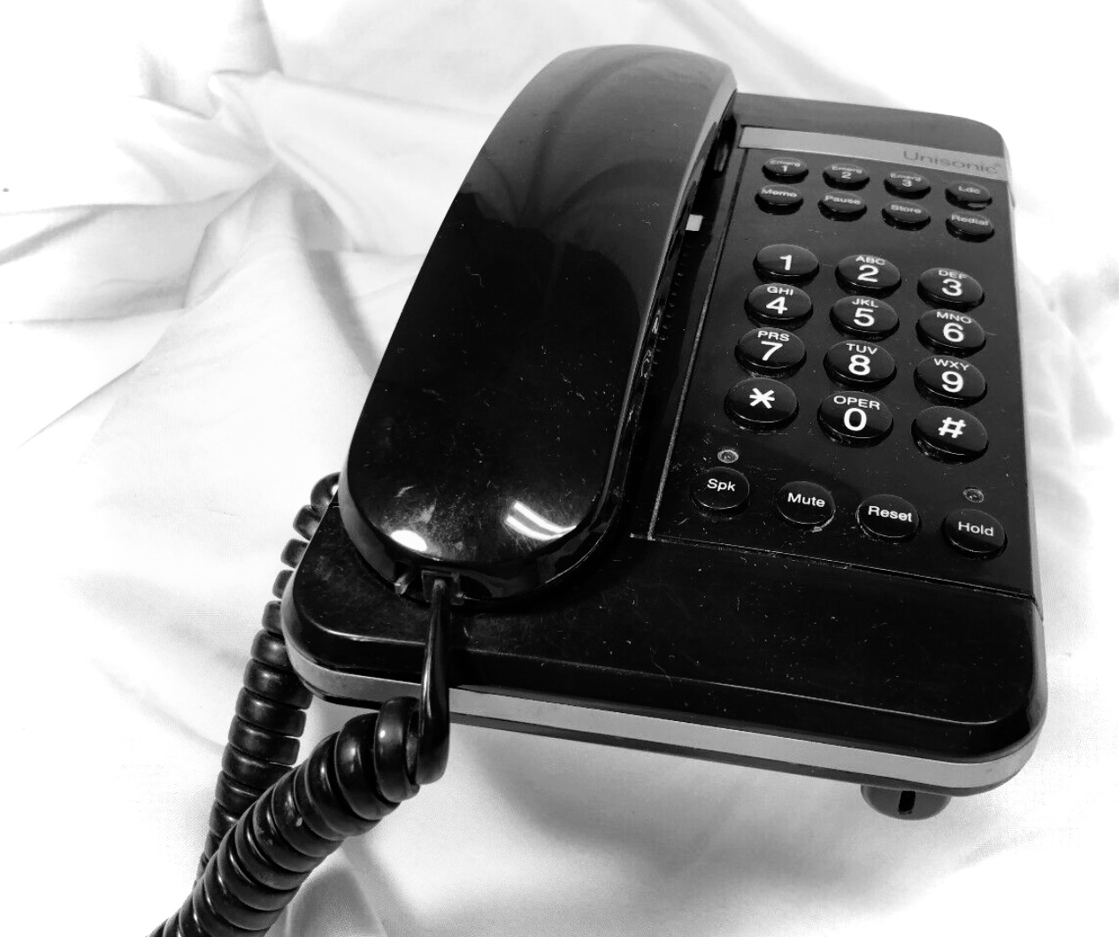 My favorite landline telephone was a Unisonic Model 9335, which had a particularly light, sleek, and comfortable handset and nice controls. I finally gave up on landline phones at home when I went fully cellular in May 2009.