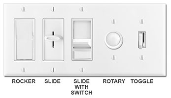 Another light switch type that I’ve never liked is the rotary dimmer that you push to turn on and off and rotate to adjust the brightness. I don’t like their look and feel and how easily the dial can turn when you push them on or off.