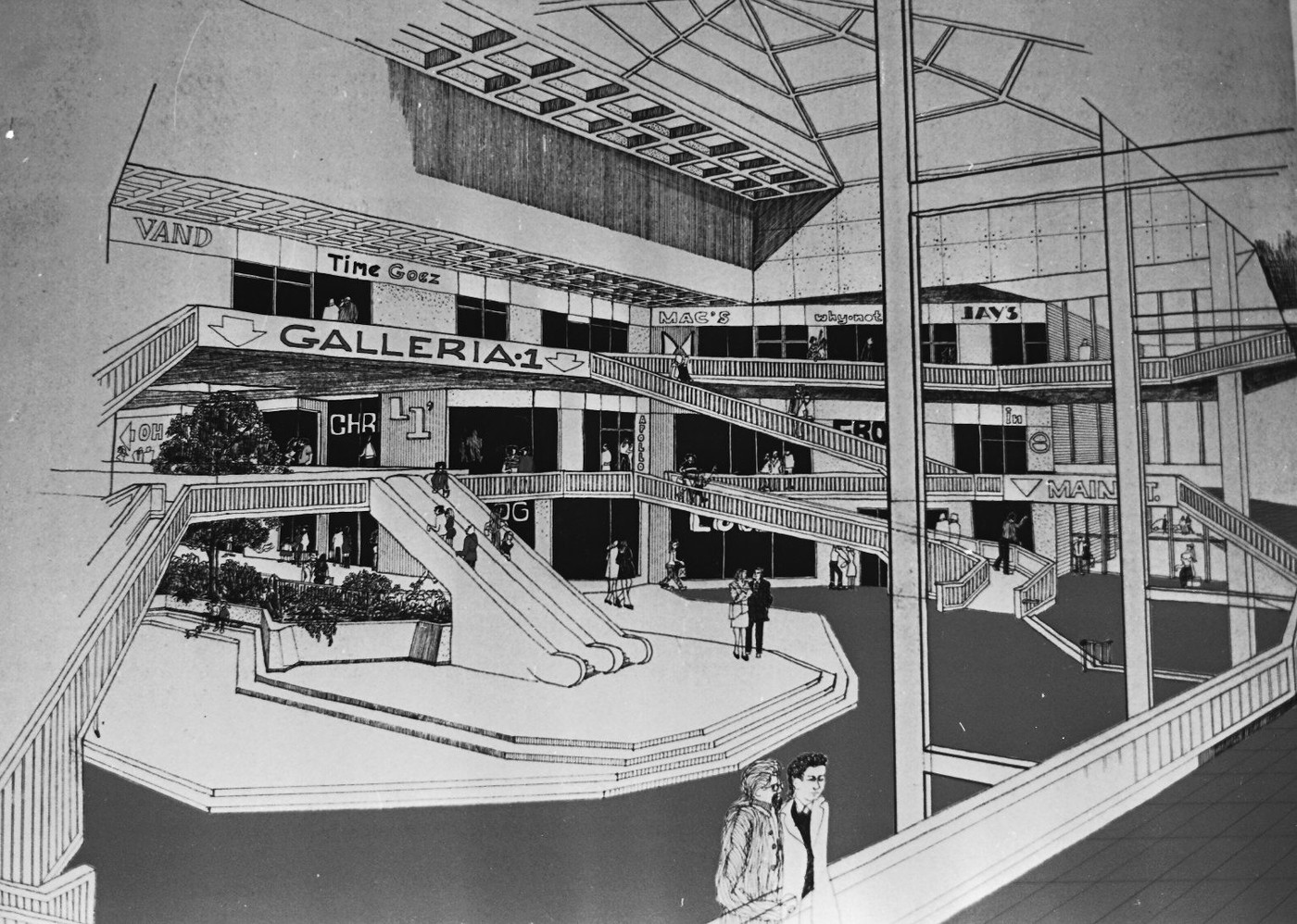 The Urban Renewal Authority had struggled to find a developer for the Galleria, and Dallas developer Vincent Carrozza finally came on board. He hired I.M. Pei and Associates to do the architectural planning, which called for 1.5 million square feet of office space, a 400-room hotel, and 700,000 square feet of retail, plus parking for 3,300 vehicles. A two-story shopping mall was to be topped with a 90-foot-tall glass dome.