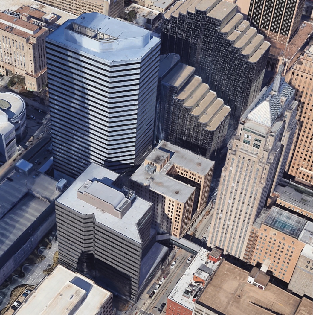 The first phase was to be one office tower, the hotel, and parking. Carroza insisted on building the odd-shaped One Galleria, now known as Corporate Tower, on the old Hales building site in 1980. Carrozza then announced the taller but even less inspiring Two Galleria, now known as Oklahoma Tower. They sit at the northeast corner of the superblock, hemming in the venerable Robinson Renaissance.