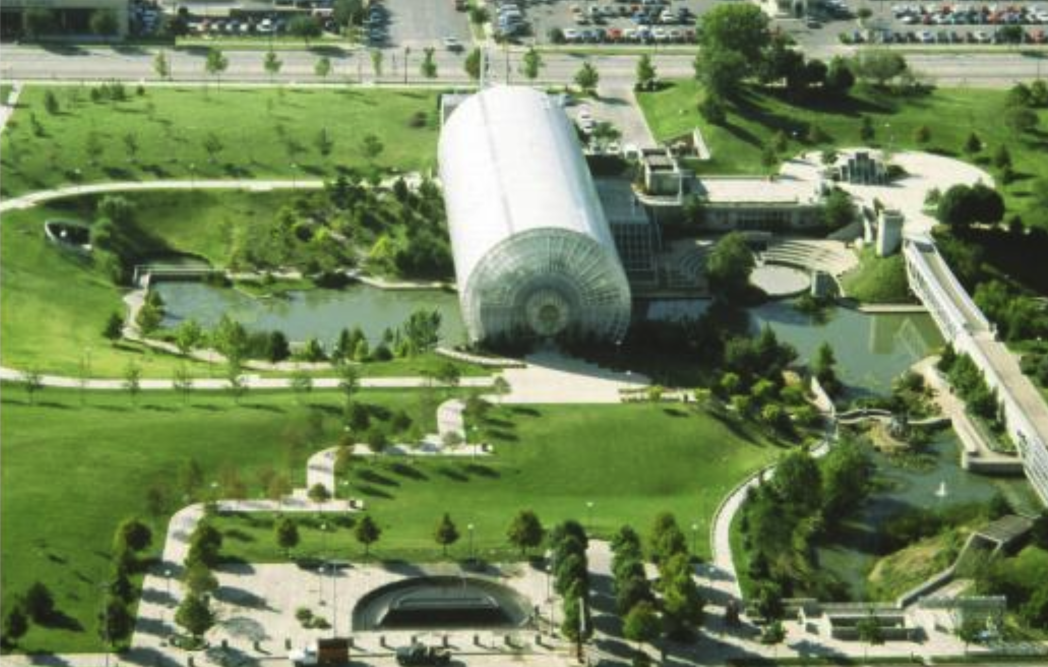 The Garden’s infrastructure was built from 1977 to 1981. I.M. Pei in the 1960s had emphasized having a low-elevation pool to make the space feel special, and another 1960s design model for the “Tivoli Gardens” had included two botanical tubes and an observatory.