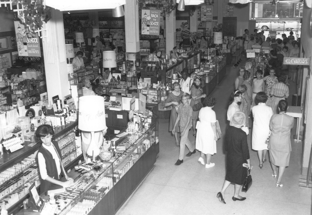 [1960 interior – Source; Sit in – Source; Penn Square exterior – Source; Crossroads exterior – Source]