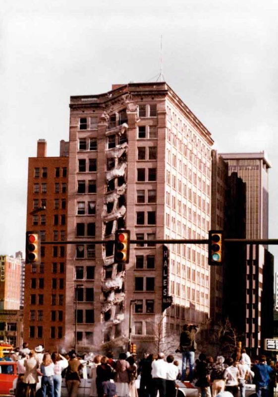 Far less fortunate was the 12-story Hales building of 1910, which had been built with a Bedford limestone exterior and floors of Tennessee marble and Italian marble wainscoting. An offer from the Hales heirs to buy and renovate it was not accepted, and the building was dynamited and destroyed in 16 seconds on April 8, 1979.