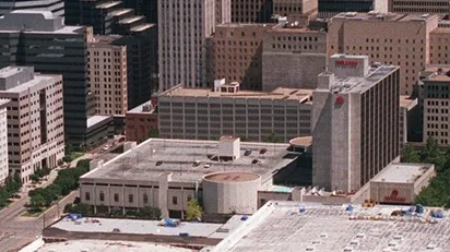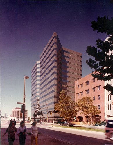 The Century Center was constructed just north of The Myriad in the block west of the new downtown central HVAC plant. Thermal Systems, formed by Charles Ingram, president of Oklahoma Natural Gas, had set up a boiler/chilled water plant at the corner of Sheridan and Broadway in 1970. Now Veolia Energy, it still pipes water to buildings across downtown for climate control.