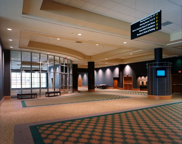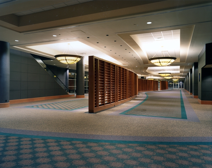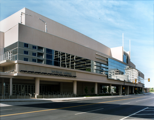The same project that built the 2002 arena spent $35 million to renovate and expand the 1,000,000 square foot Myriad. That added 105,000 square feet of new facades and entries, a grand staircase, a 25,000 square foot ballroom, 21 meeting rooms, and a sky bridge to a new hotel. Click on the center-right edge of the photo below for a four-photo slideshow; the photos came from GSB, Inc.