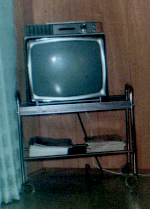 In 1967, my father won a 19″ RCA portable television at a hunt. It was placed on its rolling stand at our bluffside cabin on Table Rock Lake in southwestern Missouri.