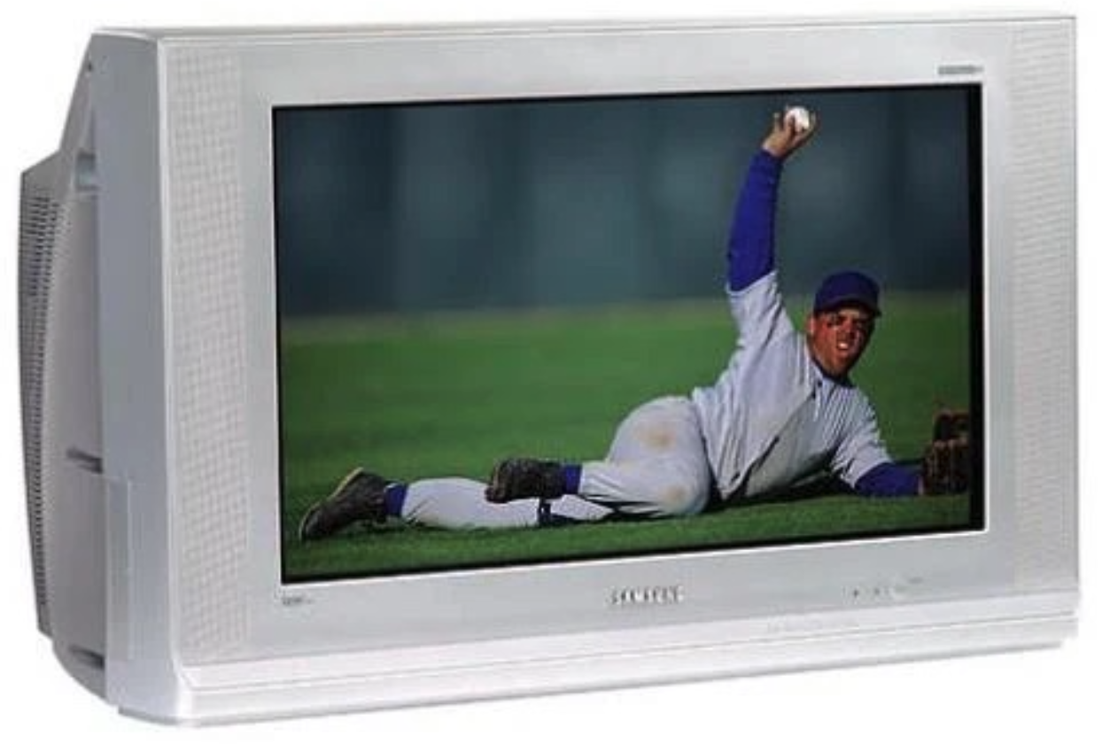 Around 1987 I moved to an apartment with a long living room where my 13″ television was too small. My father gave me a used 19″ Zenith color television, and I used that until 2003, when I paid $1,000 for a 30″ Samsung wide-screen flat CRT television. I liked its 16:9 aspect ratio and that it had about 800 lines of resolution, so it was an early high-definition set that could accept 1080i signals. However, it was still a cathode ray tube set and consequently weighed over 120 pounds. I had to buy a special swiveling stand for it, and I still use that stand in our living room for our lightweight 55″ OLED television.