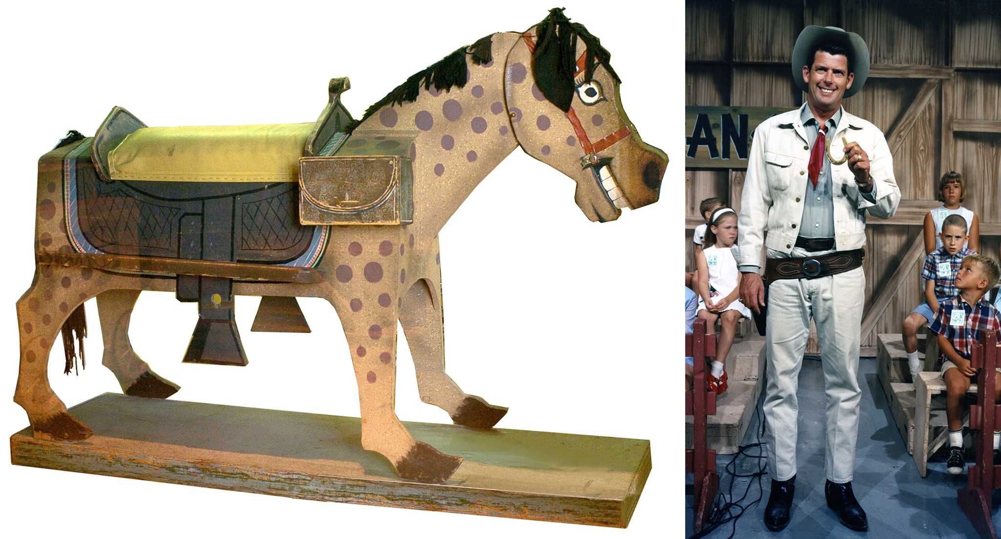 On weekday afternoons when I was very young, I would watch the Foreman Scotty show on WKY television, and I got to sit on Woody the Birthday Horse twice at their studio. My only memory of the experience is of being backstage in a dim hallway and them showing us Flintstones cartoons on a monitor to keep us entertained. However, I found that terribly confusing, as we were seeing that on a television at the wrong time of day…I was so used to live television that it was a revelation that they could show something on a closed-circuit system. Decades later, I showed Wendy the horse in the Oklahoma History Center, and she was mightily unimpressed.