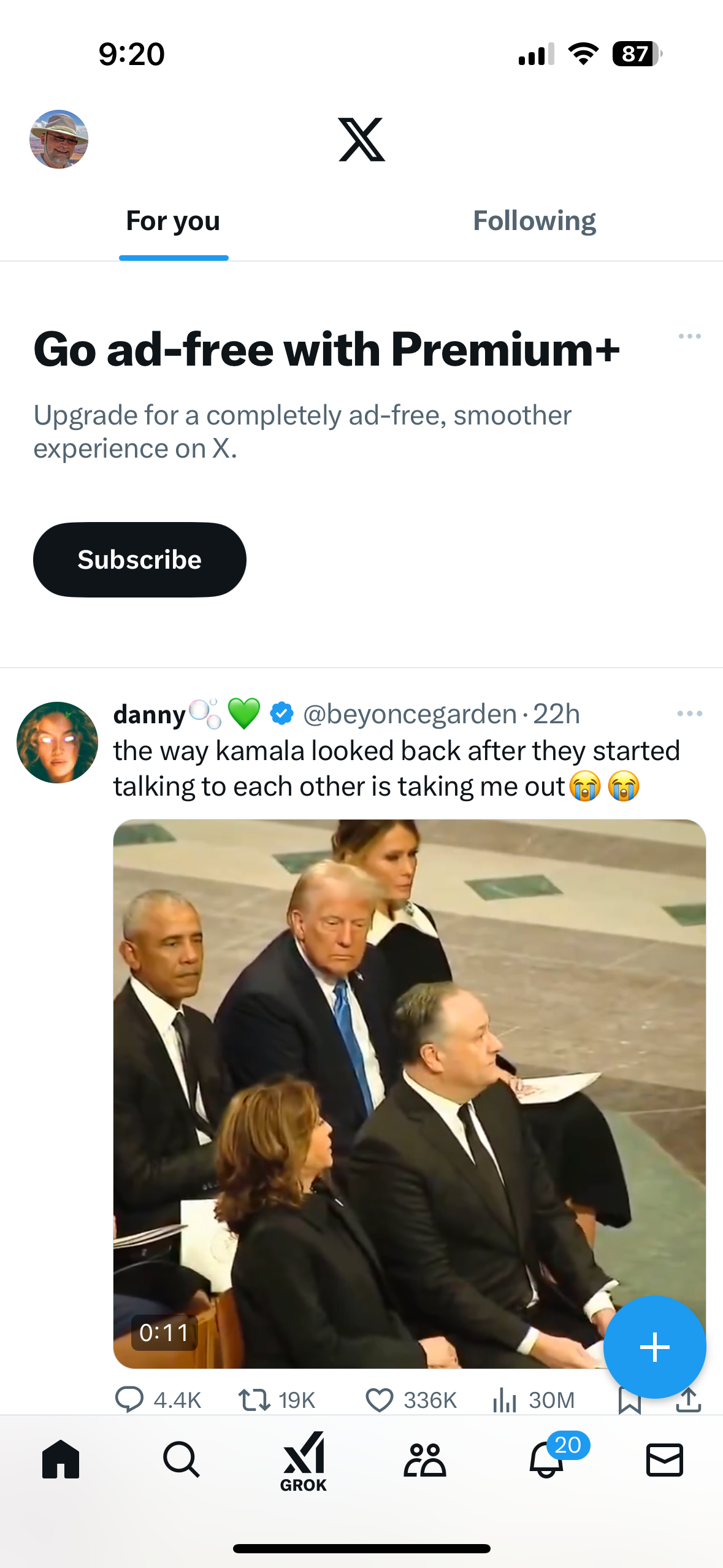 The X app’s For you home screen showed me an uninteresting post about politicians at Jimmy Carter’s funeral, while the Following section showed me a post from Bartlesville High School about a basketball tournament. That led me to wonder what X accounts mine was set to follow.