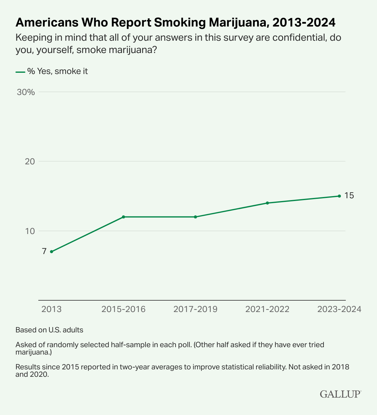 Over the past decade, the percentage who report smoking it has more than doubled:
