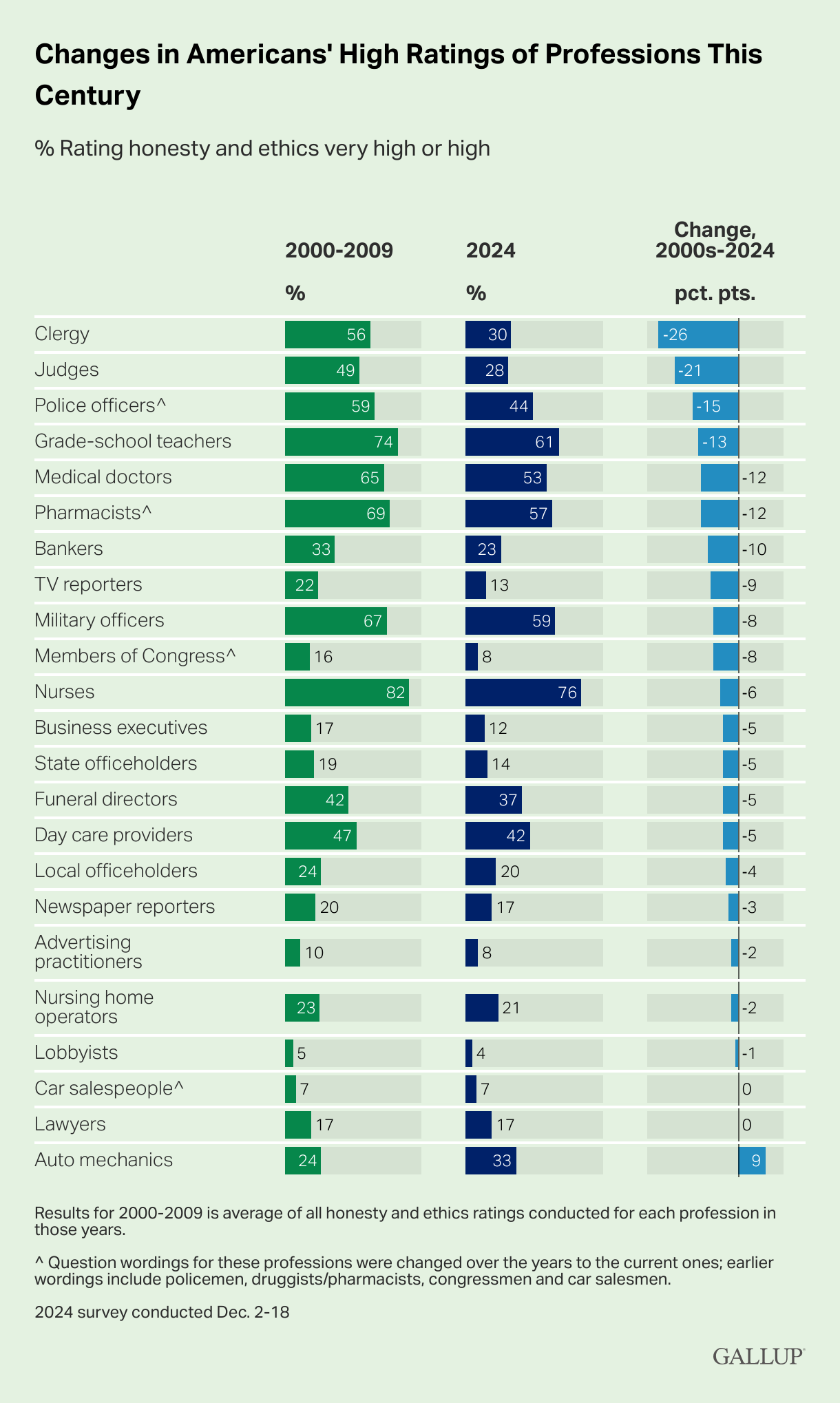 Perhaps the most depressing news is that ratings of the honesty and ethical standards of people in many different professions have fallen.