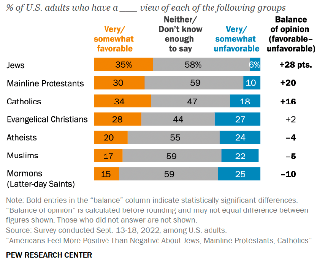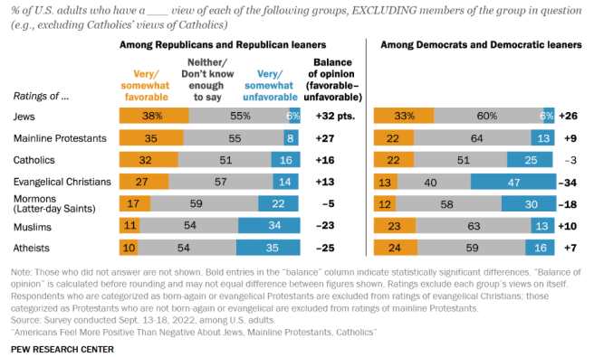 Here are how U.S. adults as a whole viewed various groups in 2022: