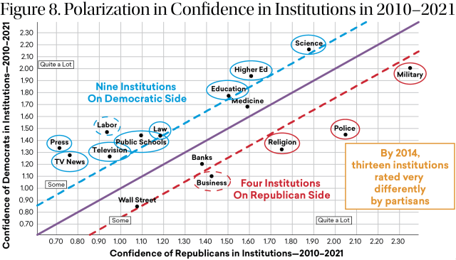 Compare that to the 2010s, when Democrats had more confidence in knowledge-producing institutions while Republicans had more confidence in order-preserving ones.