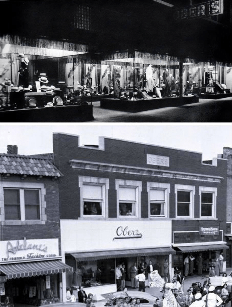 My best job, and one I kept from year to year, was presser of alterations at Oberʹs Menʹs Shop, the swankiest menʹs shop in downtown Lawrence. There was a balcony affair above and at the back of the store which served as an alterations and pressing room. Up there, high above the sales floor, a little lady seamstress did all the alterations of suits, pants, jackets, etc. sold in the store. After she was through with a garment she would hang it up to be pressed. I would come in and steam press the alterations she had done on a given day, or come in on Saturday and press all she had done over a period of a few days.
