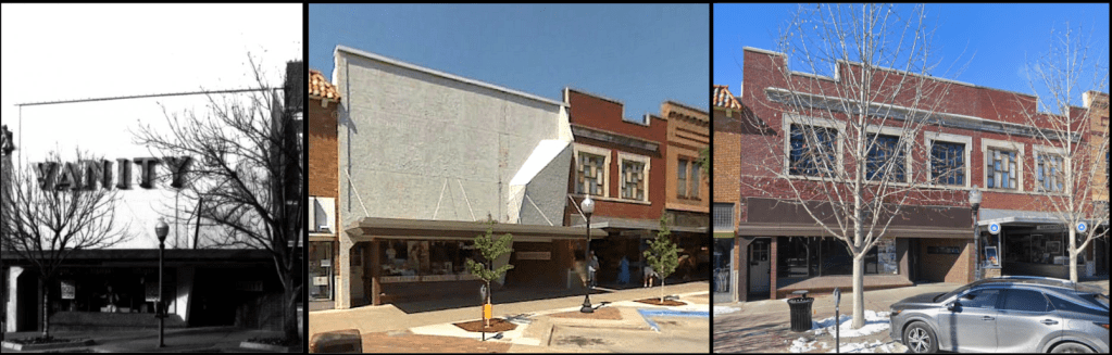 Henry “Bert” Buell Ober had purchased the store from Abe Levy way back in 1896. By the time my father worked there, Ober’s had downsized into the southern part of its building, and eventually the upstairs area was used to sell Boy Scouts apparel. I was unable to determine when the store closed, but in the 1980s or 1990s the south part of the building was “modernized” with a hideous new façade, causing the building to be designated as “non-contributing” in the historic downtown’s listings in the National Register of Historic Places. Thankfully, sometime between 2019-2021 the original brick design was restored. I was gratified that anything recognizable remained in downtown Lawrence that my father had mentioned from his time there over three-quarters of a century earlier.