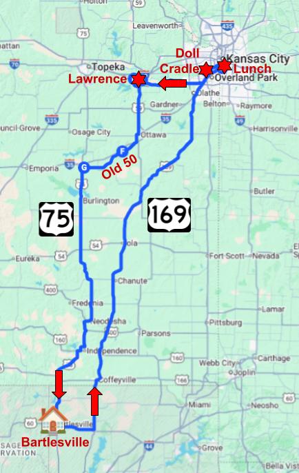 On our third day in Lawrence, we packed up and drove over the west side of town for breakfast at The Big Biscuit. Then we drove south on US 59 to Ottawa. We could have taken Interstate 35 southwest to US 75, which leads through Bartlesville 130 miles to the south.