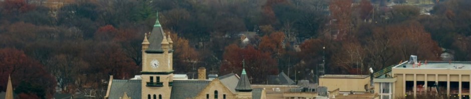 We first drove north through Lawrence along Massachusetts Street all the way north to the Kansas River. I wanted to scope out the downtown shops and restaurants, figuring we would eat in that historic district during our stay. The drive was a pleasant one, with many Victorian homes painted in light pastels adorning the streets south of downtown. As we approached the unseen river, we turned west to climb Mount Oread to the hotel.