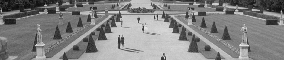 Ann Manov summarized: “A group of elegant French tourists arrive in 1920s dress, like summer tourists at ‘Los Teques or Marienbad.’ Lounging around the hotel and the garden, they have the same banal conversations over and over again. One of them is an enigmatic, Gypsy-like woman sporting a bob and a headscarf. Her name is Faustine, and the fugitive follows her around the island, desperately in love. But she simply does not notice him.”