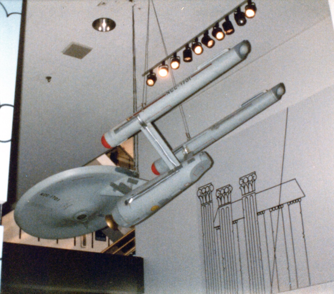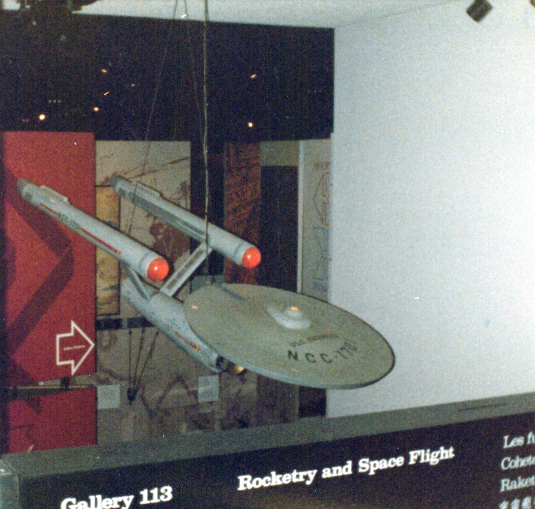 The 11-foot hero model, donated to the Smithsonian after the show went off the air, also suffered. I first saw that model in person in 1984, by which time it had lost its original nacelle caps and deflector dish. I took photos, with my crummy 110 camera, from various angles, including the unfilmed port side, which had tape all over it due to electrical lighting that had been added to the model in 1965 after the first pilot was filmed.