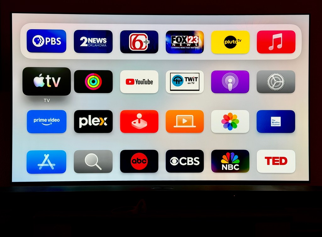 So I hooked the Apple TV 4K box into one of the TV’s HDMI ports and installed the PBS app on it. For convenient access, I also added three regional news apps: